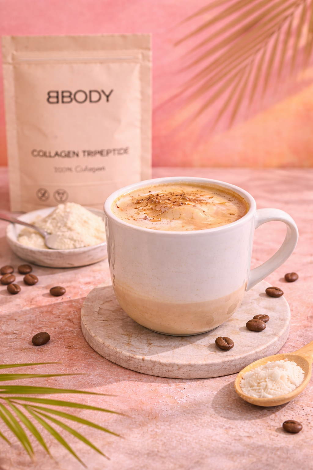 Met BBODY collageenpoeder an je je ochtendkoffie omtoveren tot een echte beautyboost van binnenuit.